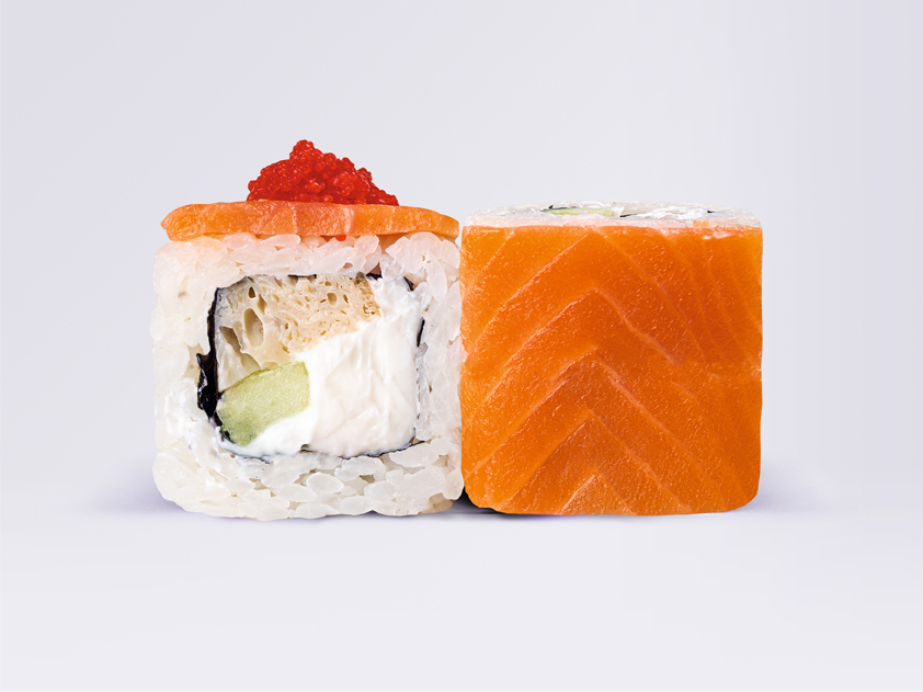 Лосось, сыр сливочный, икра масаго, японский омлет, огурец