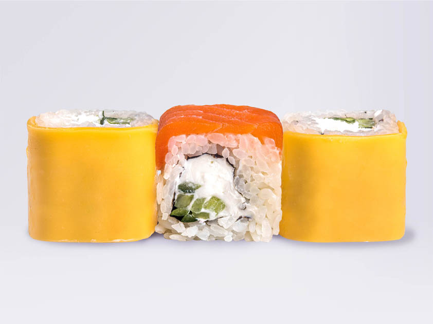 Лосось, огурец, сыр сливочный, плавленный сыр Чеддер