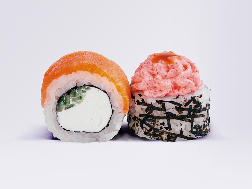 Роллы: Филадельфия классическая 1/2, Лава с креветкой 1/2