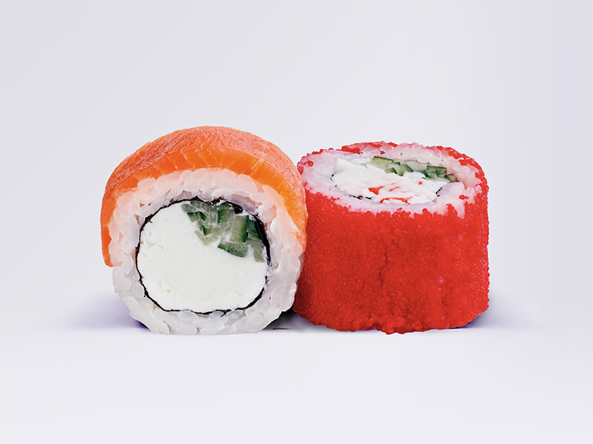 Роллы: Филадельфия классическая 1/2, Калифорния с крабом 1/2