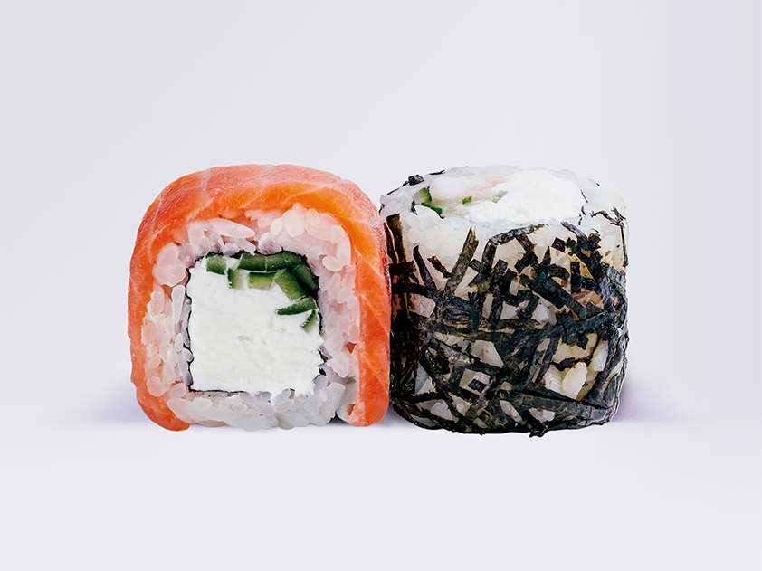 Сыр сливочный, креветка отварная, лосось, огурец, соус лемонграсс, кунжут